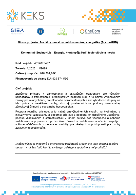 Dôležitou súčasťou projektu je aj sociálny rozmer – snaha zabezpečiť prístup k lacnejšej a čistej energii aj pre ľudí ohrozených energetickou chudobou. Energia by nemala byť luxusom, ale základnou istotou.